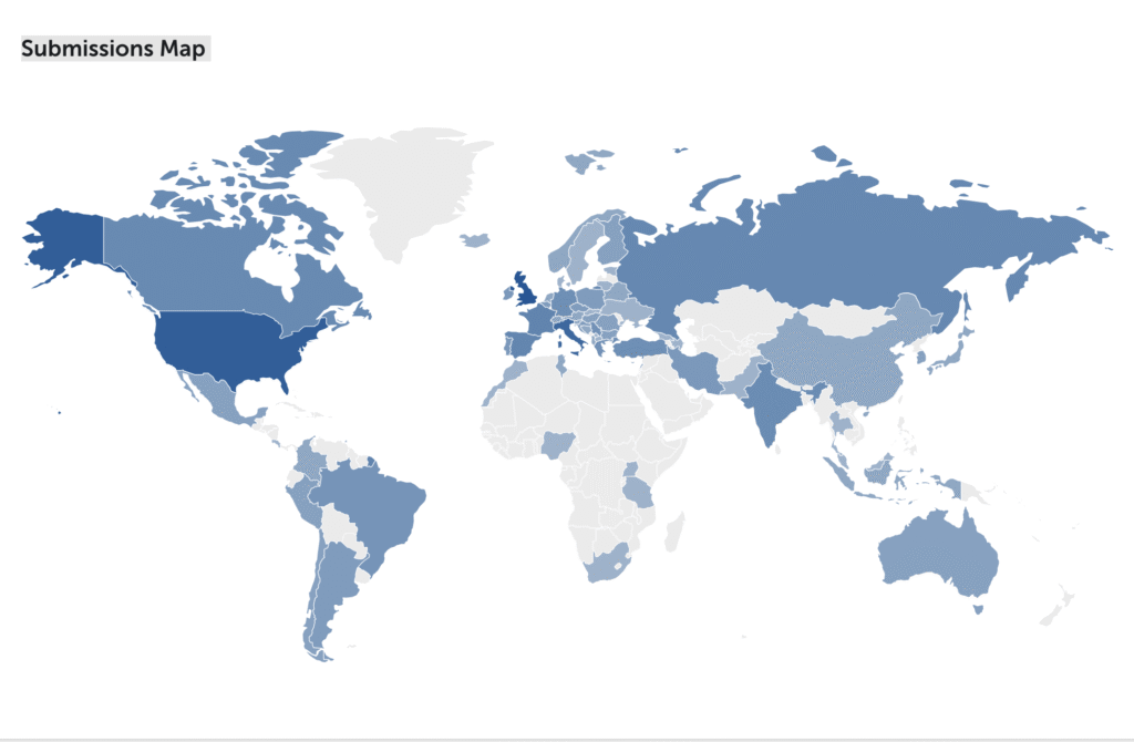 Remembering Nearfield has registered 367 submissions achieving 54 official Selections from international film festivals, visually expressed on the infographic map above.
