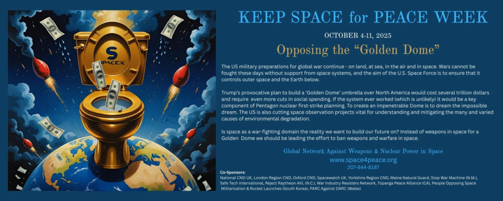 Each year the Global Network Against Weapons and Nuclear Power in Space calls for global actions to support Keep Space for Peace Week which will take place this year October 4-11, 2025