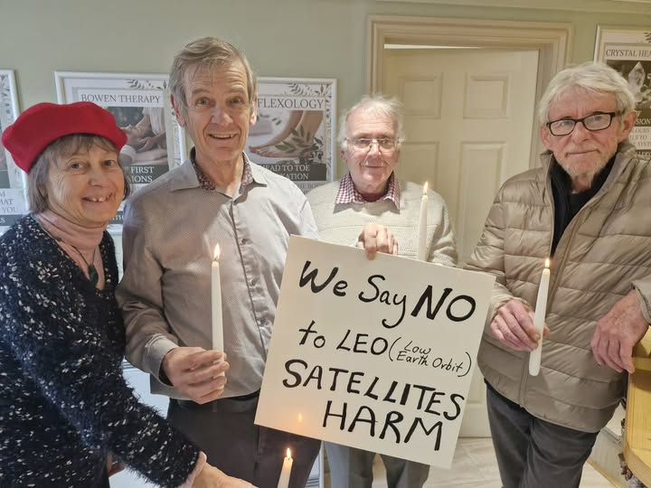 We invite you to join an International Action to Shine a Light on Low Earth Orbit (LEO) Satellites by holding Candle or Lantern Vigils in groups or individually. Let’s reclaim the Heavens from the tens of thousands of LEO (Low Earth Orbit) satellites being launched into space in the name of “broadband for all”, AI, and war.